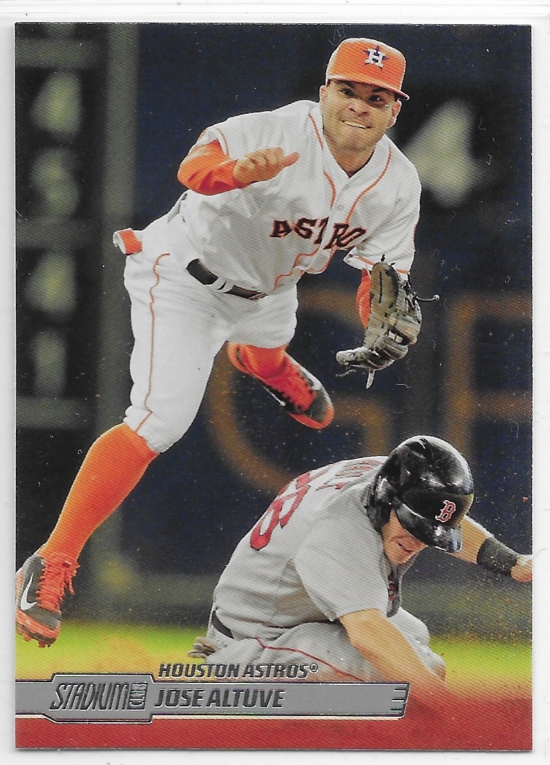 Despite there being two Reds on this page, I think this is the most boring page in the set thus far in terms of photos used. To be honest, only the Evan Longoria helmet flying off or the Jose Altuve jumping card are of any interest to me. I don't expect that either card will make it much further in this "Just for Fun" competition but I have to pick a page winner so I'm going with Jose Atluve turning a double play.