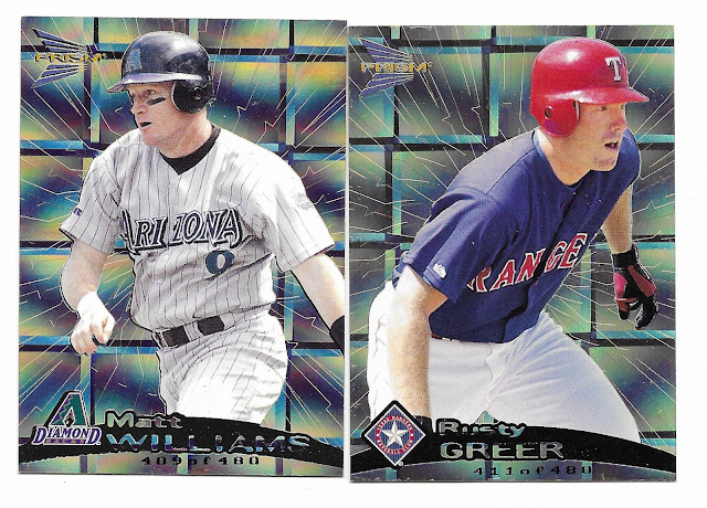 One of the reasons that so many collectors love Pacific (including me) is that the company often had interesting ideas for parallels as well as inserts. The '99 Prism set took a few cues from sets like Topps Tek in that there are a number of different base card parallels - though thankfully they are easier to recognize at a glance than Topps Tek might be (and certainly easier to recognize than the parallels that Pacific would put out in Prism set in the next year)!
