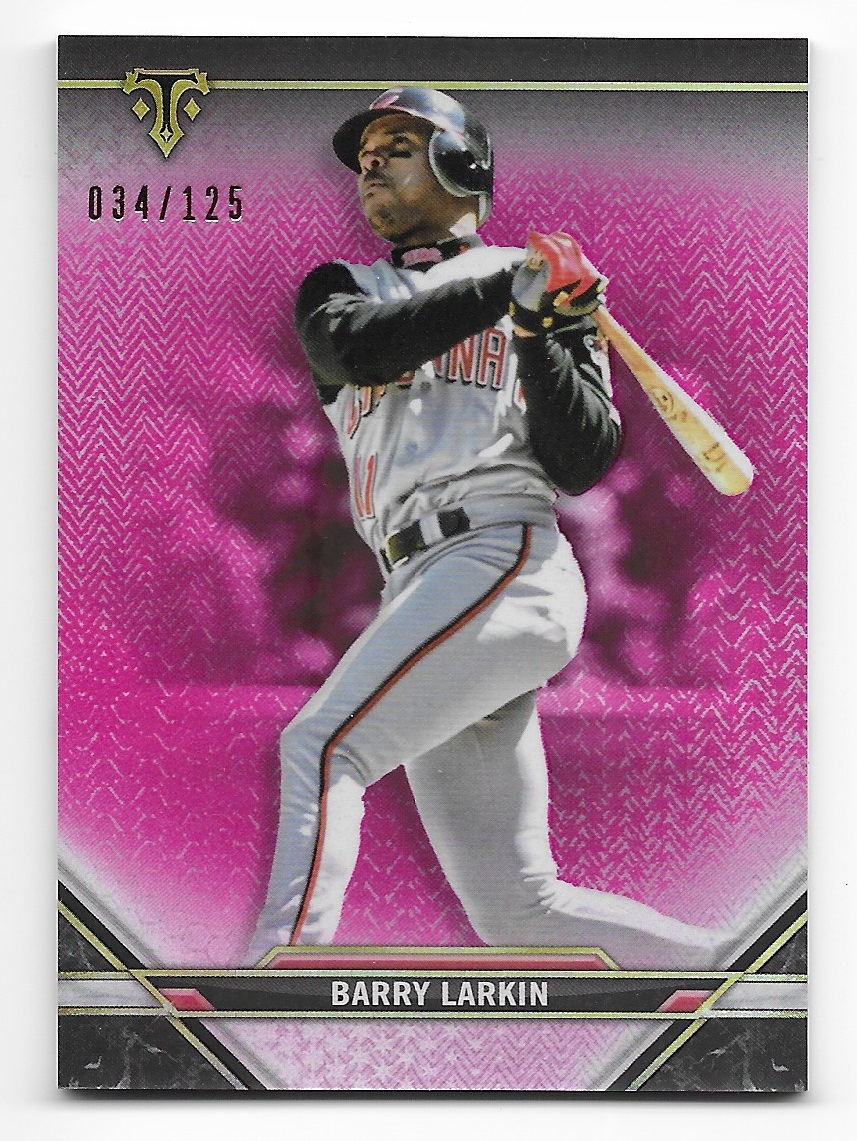 I kind of like the vibrant pink background - and I'm hoping that if I am able to acquire all of the various colored parallels that I'll end up with a pretty cool binder page of Barry Larkin cards!