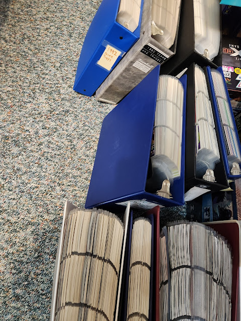 On a related note, does it bother anyone else to have set binders on a shelf that are all different colors? I've been slowly trying to track down white binders to move all of my sets into similar-looking binders. Luckily for me, my workplace is a college and there are often people looking to unload a stack of 3-ring binders!